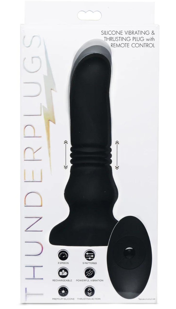 Thunderplug on suurepärane lelu eesnäärme massaaziks või niisama nautlemiseks. Tema tõuklemis-, paisumis- ja vibreerimisreziimid on reguleeritavad kaugjuhtimispuldiga. 3 kiirust ja5 erinevat vibratsiooni, lisaks 5 tõuklemisreziimi - igav juba ei hakka!