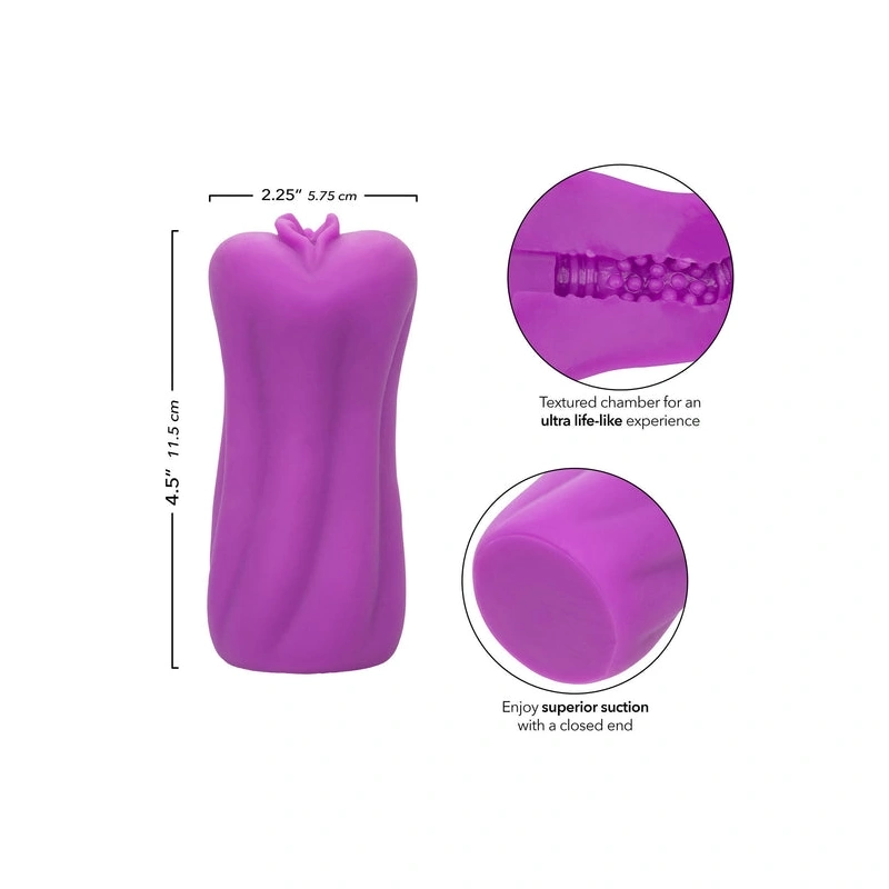 Made of ultra-soft and stretchy Pure Skin (TPE) material that feels like real skin. The textured inner chamber adds extra stimulation, while the closed end creates a powerful vacuum effect and a deep, satisfying grip.