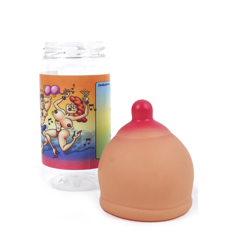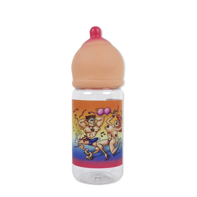 Rinnakujuline, joogikõrrega pudel mahutavusega 360 ml. Kaasas joonistusega kleebis ja koht pühendustele.
