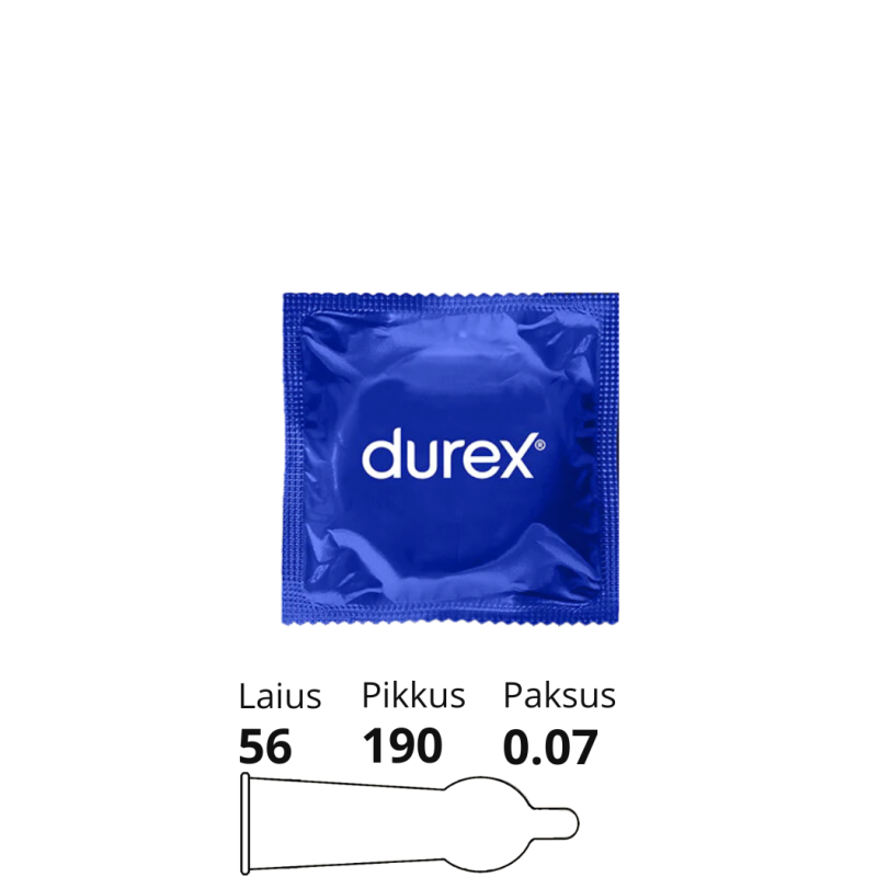 Durex Natural – smooth latex condoms (56 mm width, 190 mm length, 0.07 mm thickness) with a comfortable anatomical shape. Pack of 144 pcs.