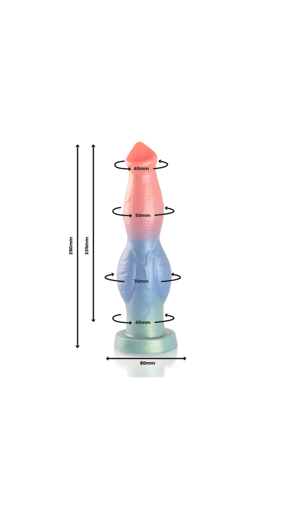 Its tapered 40 mm tip allows for comfortable entry, gradually expanding to a filling 70 mm in diameter for intense fullness. With a total length of 250 mm and an insertable length of 235 mm, this is a bold and commanding toy for advanced users. The strong suction cup base ensures hands-free fun on any smooth surface.