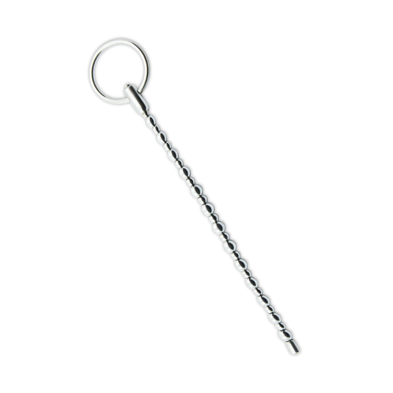 Bendable, flexible penis plug / urethral sound with ribbed pearly texture.