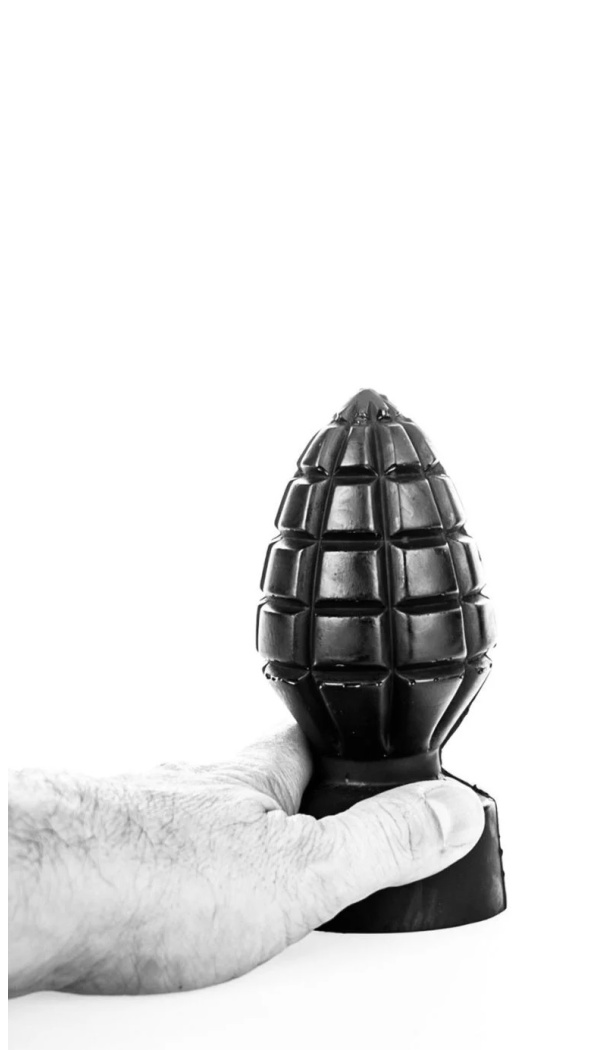 A high-quality and durable grenade-shaped anal plug made from black vinyl, free from phthalates and cadmium. Its unique textured design provides intense sensations, while the wide base ensures safe use. Suitable for both beginners and experienced users.