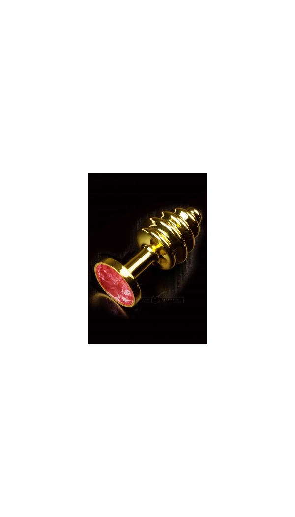Kauni punase kivikesega kuldsest metallist anaaltapp, millel on ribiline pind lisastimulatsiooniks.