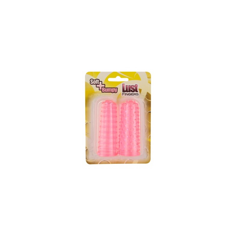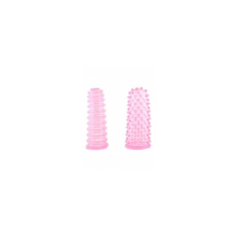 Vahva, kaheosaline sõrme peale tõmmatavate kliitoristimulaatorite komplekt, ühel pehmelt mummuline pind, teisel laineliselt ribiline pind.