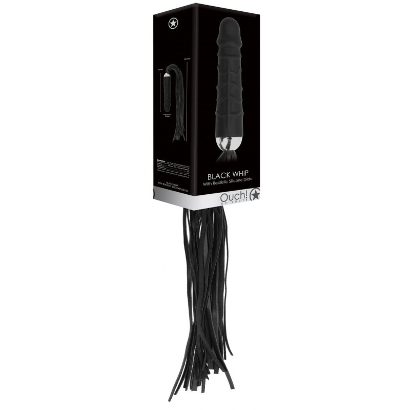 OUCH! BLACK WHIP WITH REALISTIC SILICONE DILDO