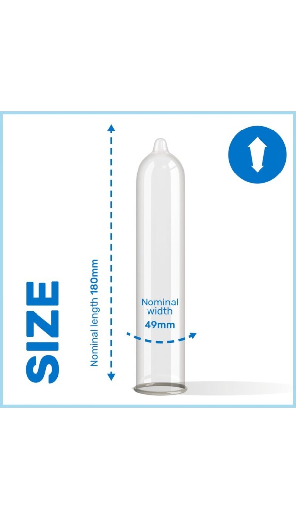 Narrower fit condoms (49 mm) for a snug and secure experience. Non-spermicidal lubricant, CE certified. Pack: 3 pcs.