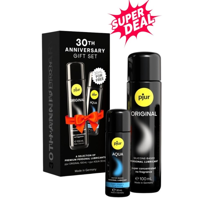 The anniversary set from pjur, the global leader in premium lubricants for over 30 years, brings together two iconic products: the silicone-based Pjur Original Bodyglide (100 ml) and a bonus water-based Pjur Aqua (30 ml). A perfect choice for those who value proven quality, want to compare different formulas, and always have the right option at hand.