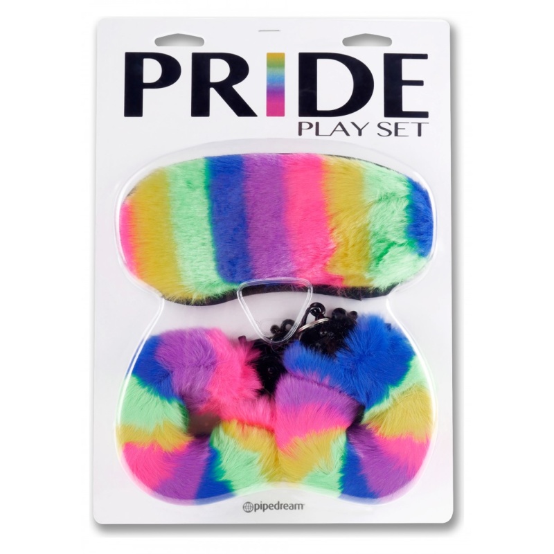 Väga pehme vikerkaarevärvilise kattega käerauad ja mask.