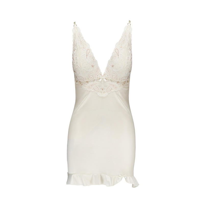 Elevandiluuvärvi satiinist öösärk kauni, läbipaistva kašmiirpitsiga rinnal ja alaseljal. Kaasas sobivad stringid.