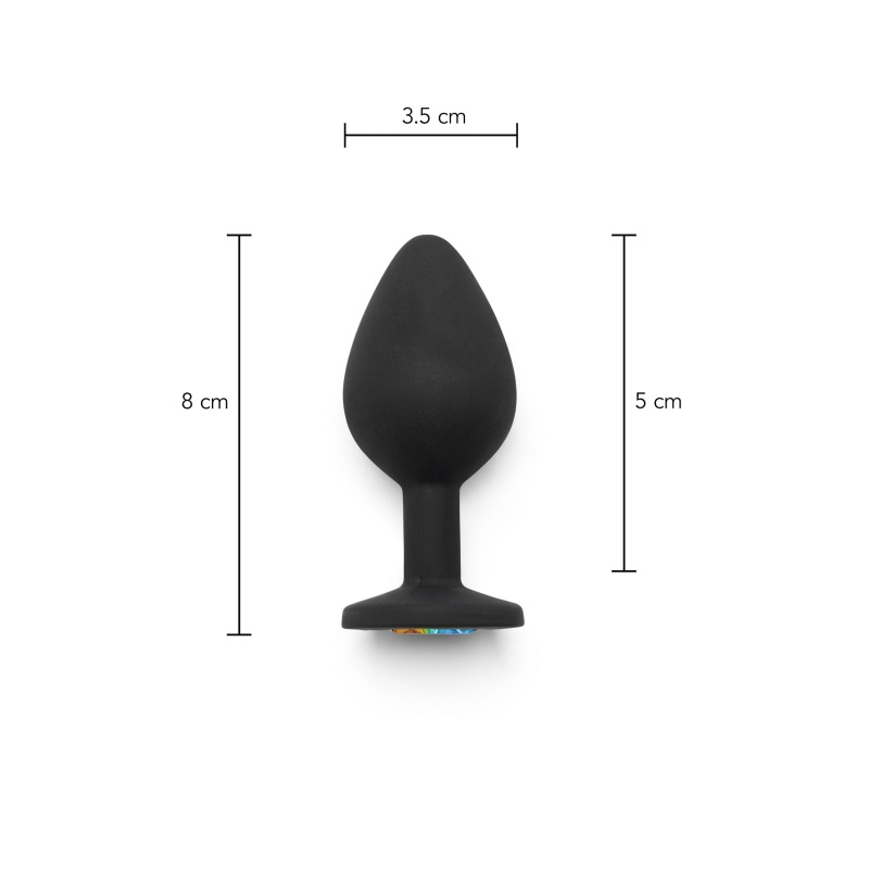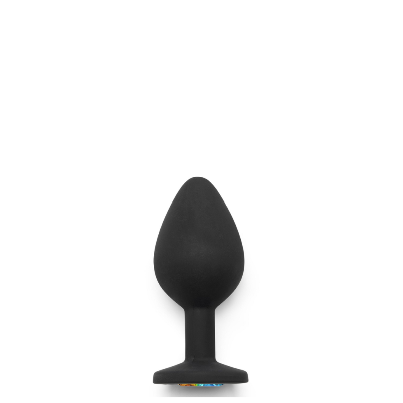 Mitmevärviliselt sätendava kivikesega siidisepinnaline silikoonist keskmise suurusega anaaltapp.