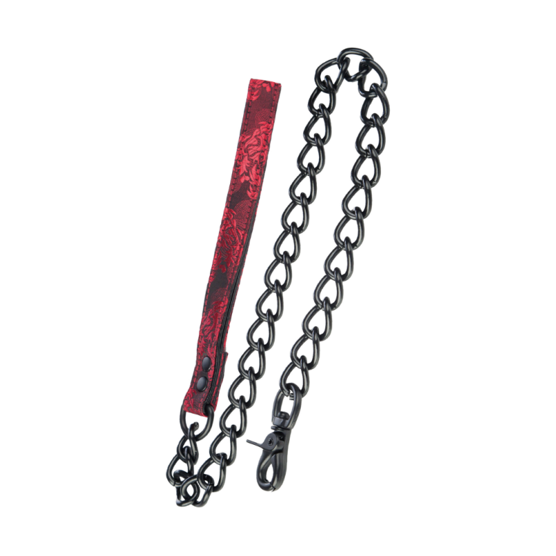 Heavy black metal chain leash with elegant red handle from California Exotics Scandal collection.