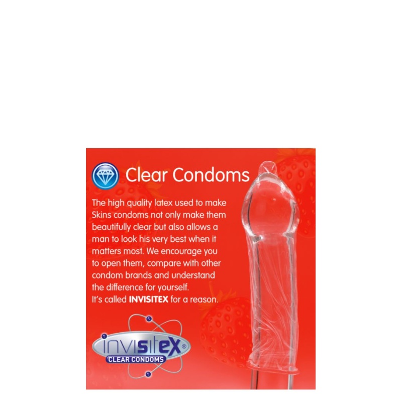 Skins Strawberry condoms offer a pleasant strawberry flavor and a natural feel thanks to their ultra-thin latex design. Extra lubrication ensures greater comfort and smoothness. A reliable and high-quality choice for everyday protection.