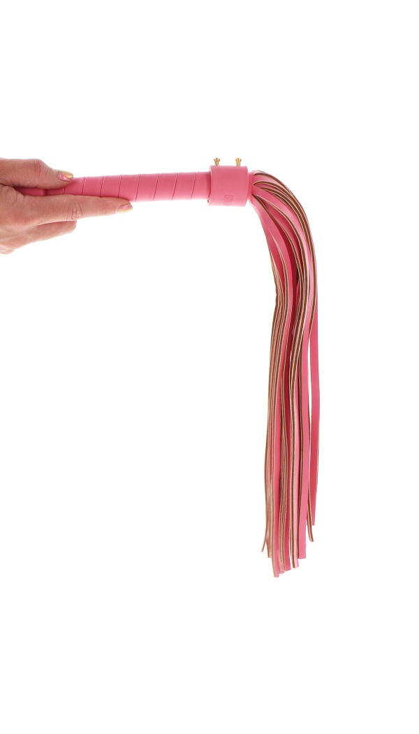 The Taboom Malibu Whip is a cute, sexy, pink-colored bondage accessory made of vegan PU leather. Explore sensual dominance/submission play with passion and pleasure. Unleash your desires and indulge in captivating play with this alluring whip.