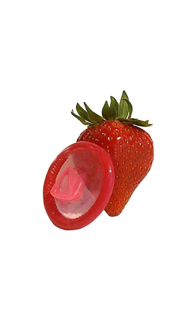 Natural latex, silicone-based lubricant, strawberry fragrance.
