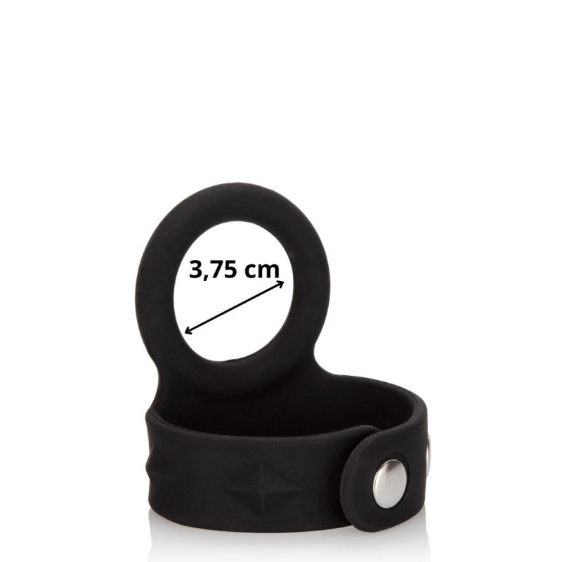 Venivast ja mugavast silikoonist valmistatud peeniserõngas koos munandeid toetava reguleeritava rihmaga.
