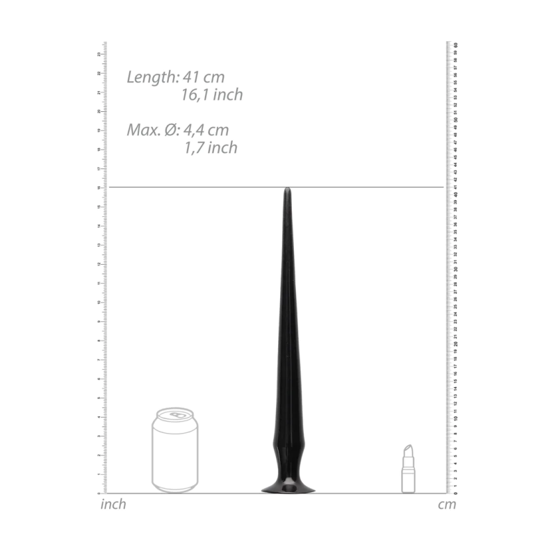 See julge ja ainulaadne mänguasi pakub uusi kõrgusi ekstreemsetele naudingutele. 41 cm pikkune kitseneva otsaga disain võimaldab järk-järgulist avastamist, pakkudes intensiivset tunnetust. Stabiilne iminapp põhjas võimaldab kasutada erinevaid käed-vabad positsioone. Valmistatud kehasõbralikust PVC-st, dildo on veekindel ja ühilduv nii vee- kui ka silikoonibaasil määrdeainetega. Peale kasutamist pese sooja vee ja seebiga ning kuivata põhjalikult.