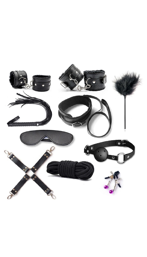 - Täielik 10-osaline komplekt rolli- ja BDSM-mängude jaoks