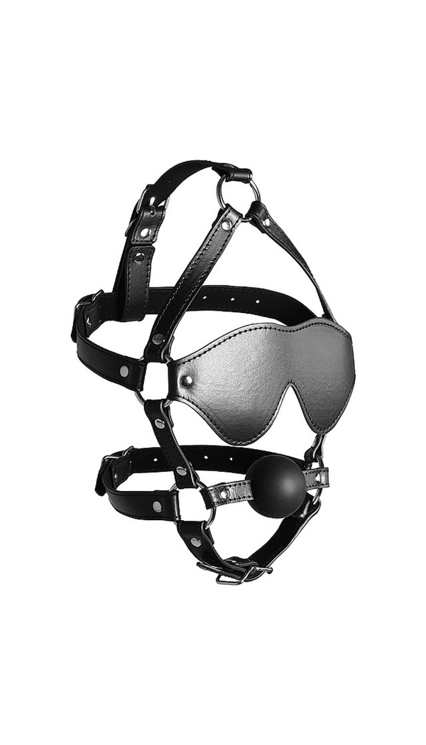 BLINDFOLDED HEAD HARNESS WITH SOLID BALL GAG