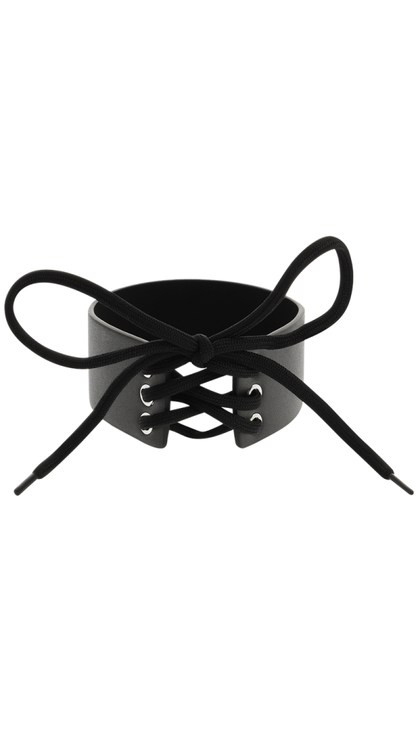 Avasta oma salapärasem pool selle laia kaelarihmaga, mis on valmistatud 100% vegannahast. See minimalistlik, kuid julge aksessuaar lisab igale välimusele erilise puudutuse. Kaelarihm kinnitub tagant korseti stiilis paelaga, mis võimaldab seda ideaalselt kohandada vastavalt vajadusele.
