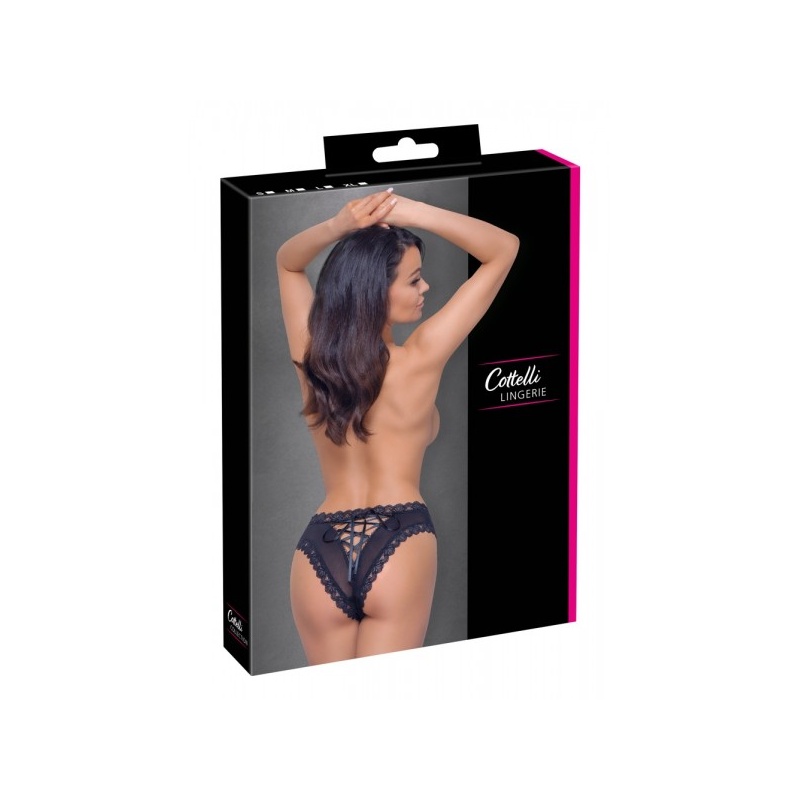 Cottelli LINGERIE mustad aluspüksid, mis on valmistatud tüllist ja õrnast pitsist, seljaosal kaunistuseks punutud satiinpael. Pehmed ja venivad püksikud istuvad imehästi ning on mugavad kanda.