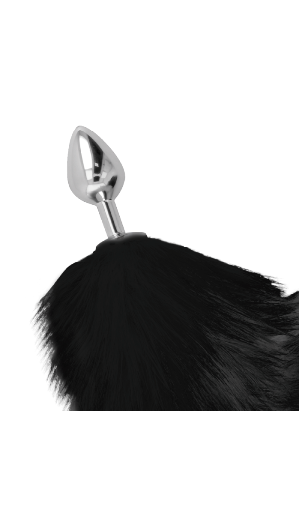 See süsimust kunstkarusnahast saba on ca 35cm pikkune ja poleeritud, niklivabast metallist tapi üldpikkus on ca 8cm ja läbimõõt 3,4cm