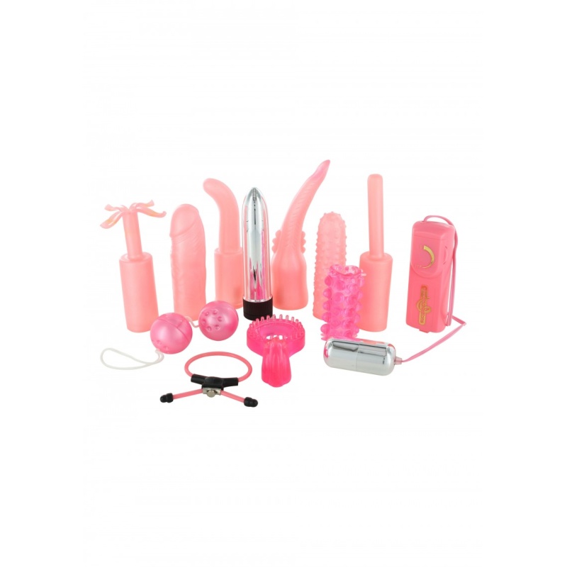 Selle lõbusa 12-osalise komplektiga võite hullata hommikuni! Komplektis on: võimas reguleeritava tugevusega vibraator, mida saab kasutada ka koos erinevate otsikute ja mansettidega (7tk), vibreeriv kuul (reguleeritav juhtmega puldist), mida saab kasutada eraldi või panna ka peeniserõnga sisse, et stimuleerida kliitorit, tupekuulid, reguleeritava suurusega peeniserõngas. Kaasas on ka patareid.