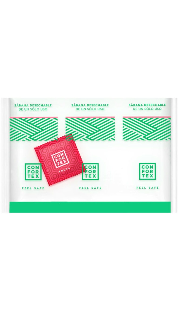 DISPOSABLE HYGIENIC SHEETS + STRAWBERRY CONDOM CONFORTEX