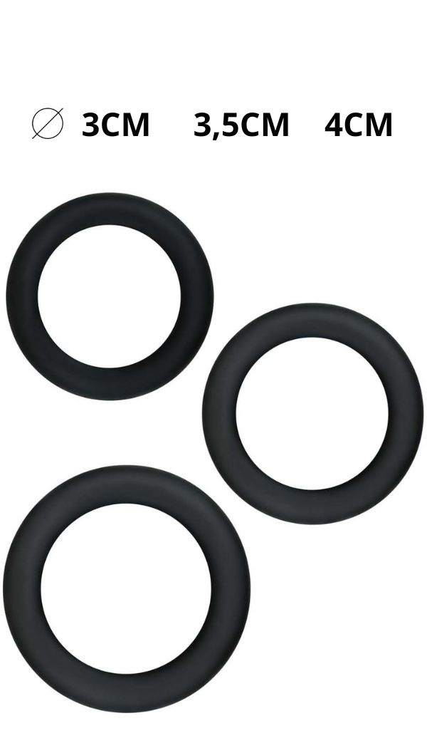 Väga hea venivusega, silikoonist, kolmes suuruses peeniserõngaste komplekt.