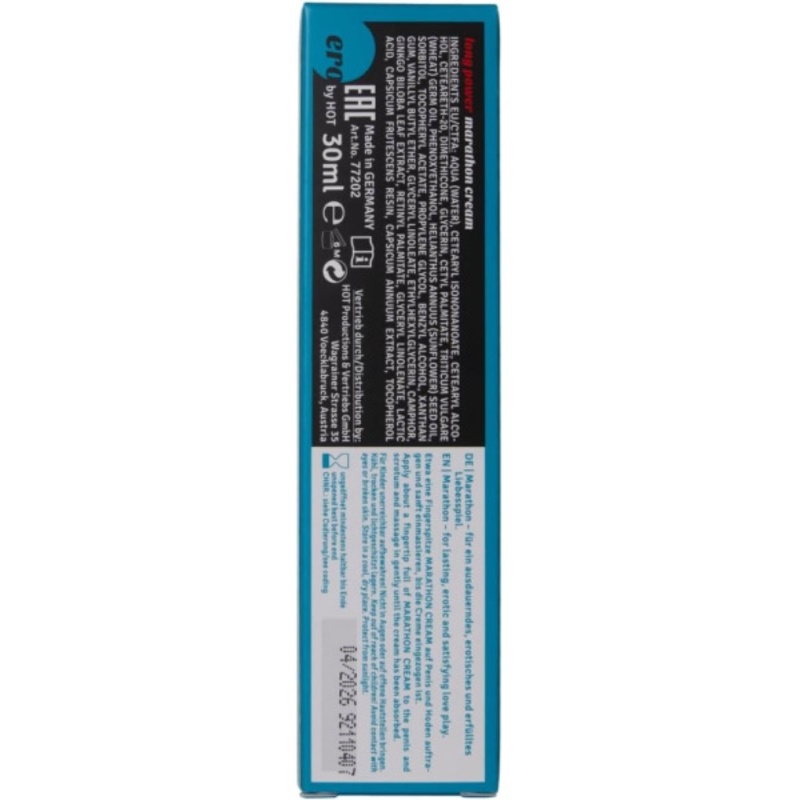 Long Power Cream MARATHON – pikaajaliseks, erootiliseks ja rahuldust pakkuvaks armumänguks pikkadel öödel. See on spetsiaalne kombinatsioon vereringet soodustavast ja toitvatest koostisosadest peenise elujõu taastamiseks. Pikendab võimet armatseda ning saada võimsaid orgasme.