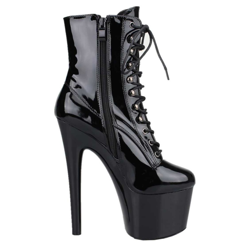 Lakknahast, eest nööritavad, tikk-kontsadega platvormsaapad. Konts on valatud tallaosaga ühes tükis, mis hoiab ära kontsa kinga küljest lahti murdumise.