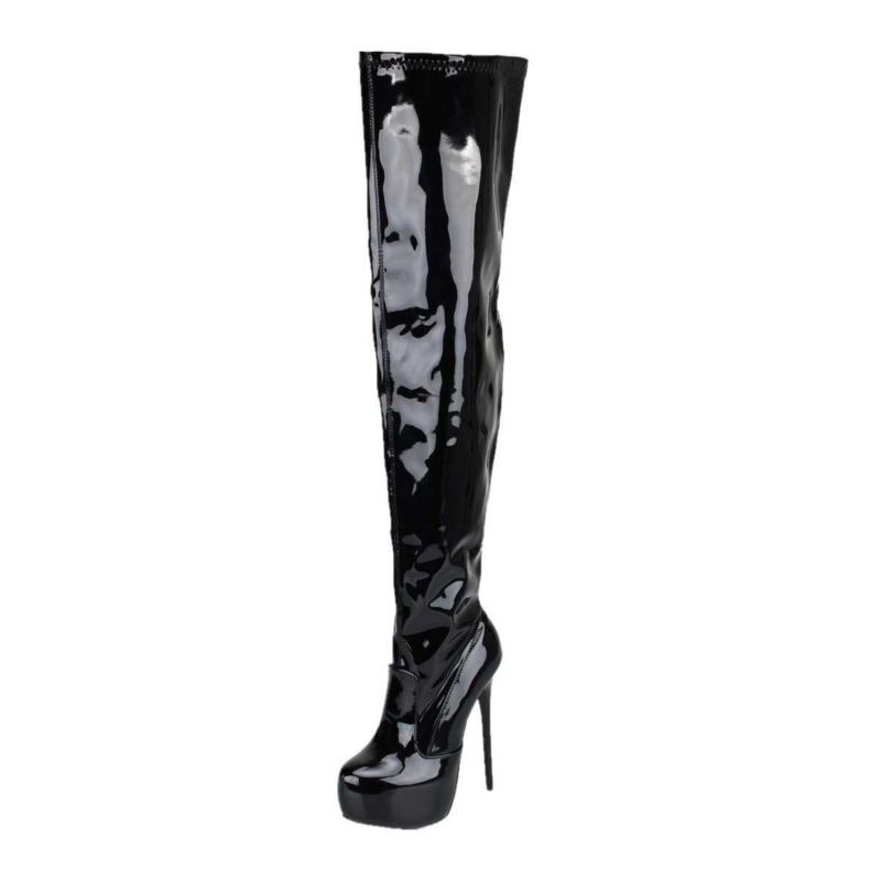 Mugavast ja kergelt venivast lakknahast, tikk-kontsade ja siseküljel tõmblukuga platvormsaapad.