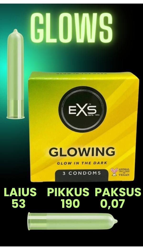 Üllata oma partnerit EXS Glow in the Dark pimedas helendava kondoomiga. Lihtsalt hoidke kondoomi ümbrist valguse käes, seejärel pange 45 sekundi pärast kondoom peale ja olete valmis helendama!