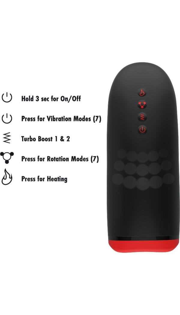 Sees on pehme meditsiinilise kvaliteediga silikoon, siidiselt sile ja tihedalt ümbritsev, et pakkuda loomulikku tunnetust. Juhtimine on mugavalt korpuse peal: eraldi nupud sisse-/väljalülitamiseks, kuulide pöörlemise reguleerimiseks (7 režiimi), soojenduse aktiveerimiseks ja turbofunktsiooniks, mis viib seadme hetkega maksimumvõimsusele. Fusion X teeb kogu töö sinu eest – jääb vaid lõõgastuda ja nautida.