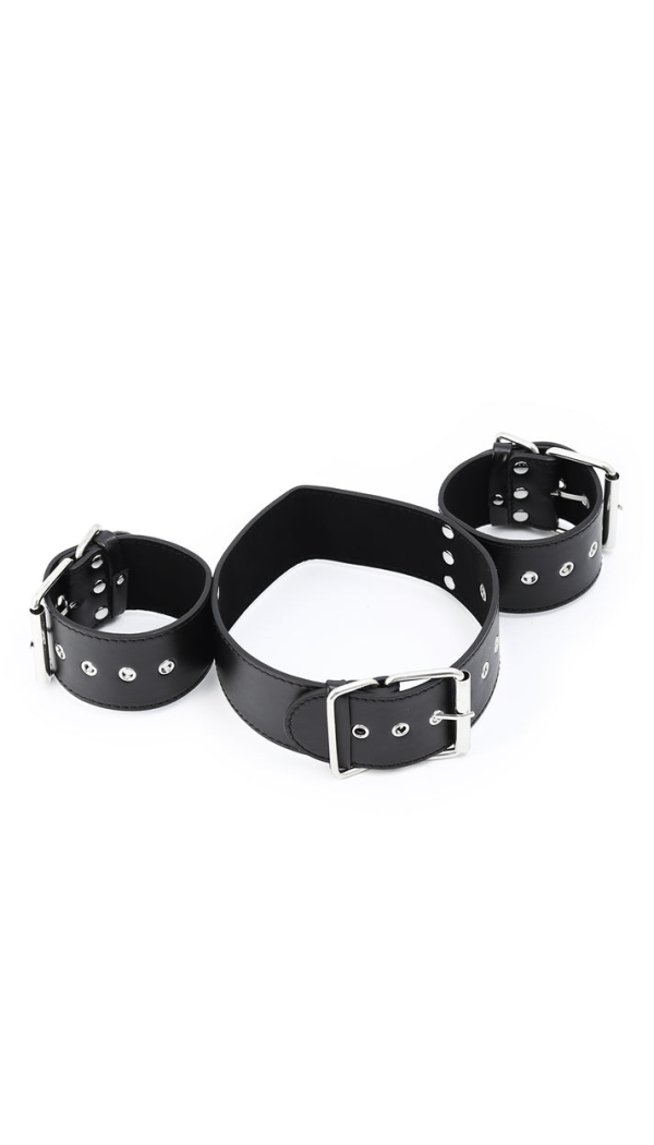 Kaelarihm ja käerauad on varustatud 7-auguliste pandlatega, nii et saad rihmad hõlpsasti enda jaoks mugavaks ja turvaliseks kohandada. Lase fantaasial lennata ja avasta, mida see vallatu aksessuaar sinu rolli- või BDSM-mängudesse lisada suudab.