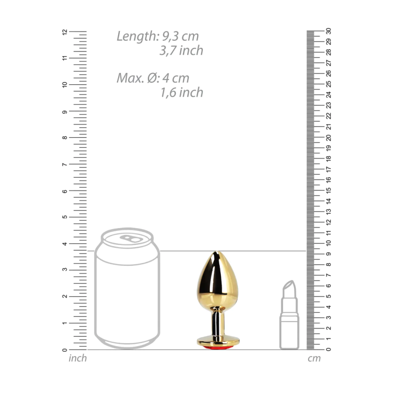 HEART GEM BUTT PLUG - LARGE - GOLD/RUBY RED