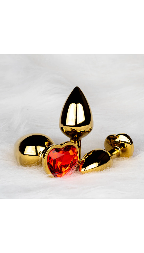 HEART GEM BUTT PLUG - MEDIUM - GOLD/RUBY RED