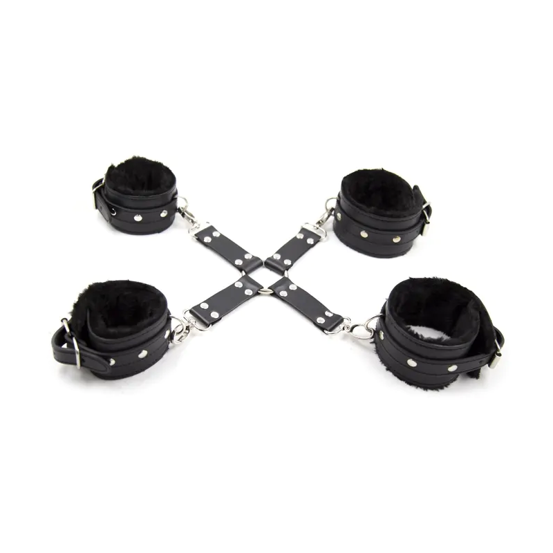 Fixxx Hogtie Cross with Plush on mugav ja stiilne ristkinnitus, mis võimaldab korraga fikseerida nii käed kui jalad. Käerauad on valmistatud mustast kunstnahast (PU) ning kaetud pehme karvkattega, mis tagab kindla, kuid nahasõbraliku hoidmise ka pikemate seansside ajal.