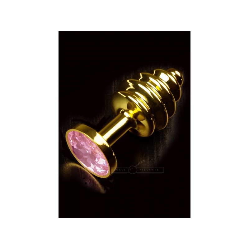 Kauni roosa kivikesega kuldsest metallist anaaltapp, millel on ribiline pind lisastimulatsiooniks.