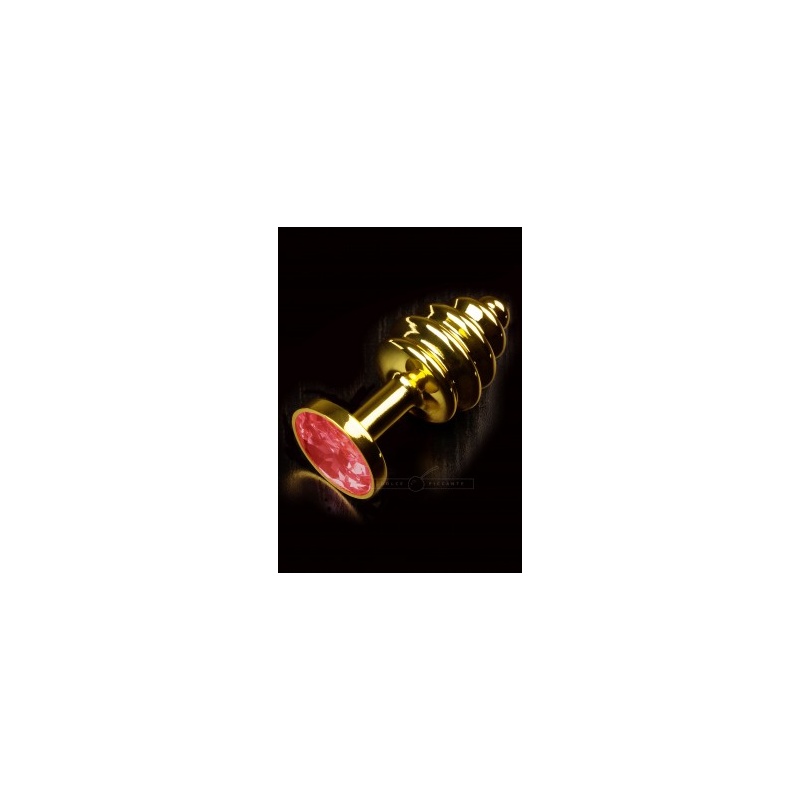 Kauni punase kivikesega kuldsest metallist anaaltapp, millel on ribiline pind lisastimulatsiooniks.