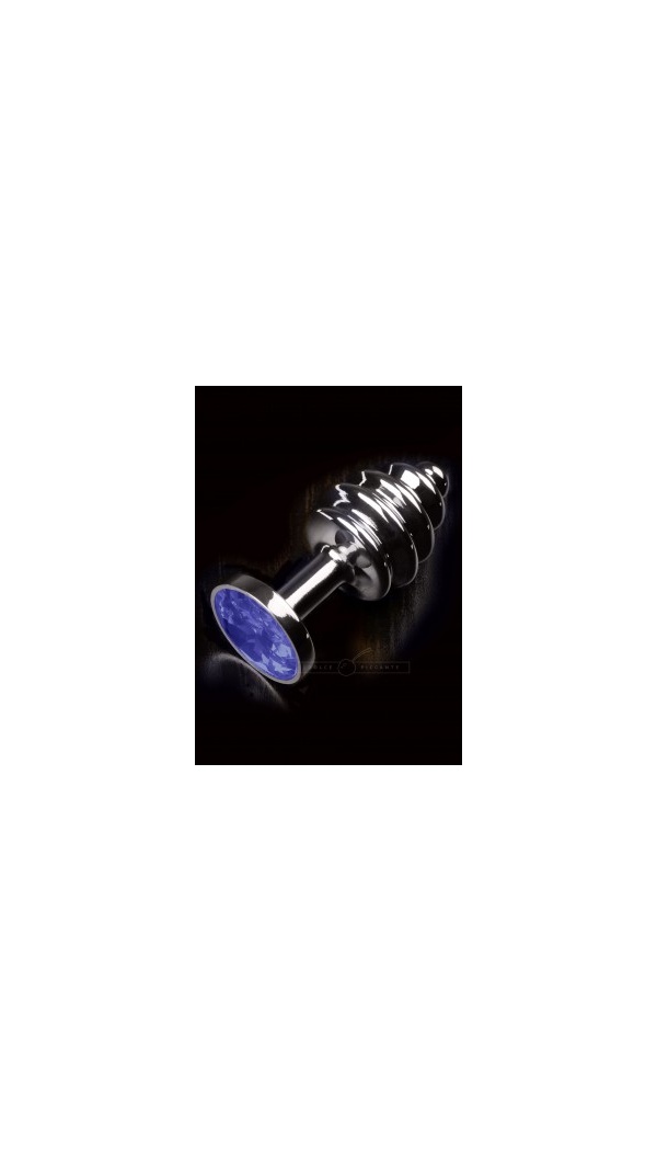 Kauni sinise kivikesega hõbedasest metallist anaaltapp, millel on ribiline pind lisastimulatsiooniks.
