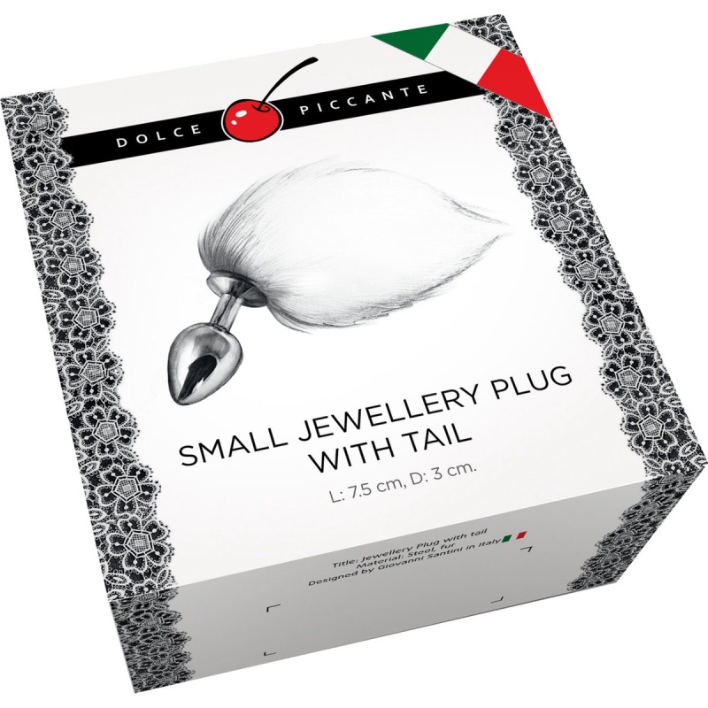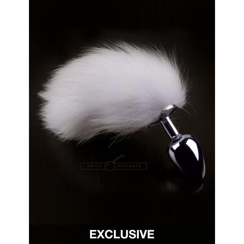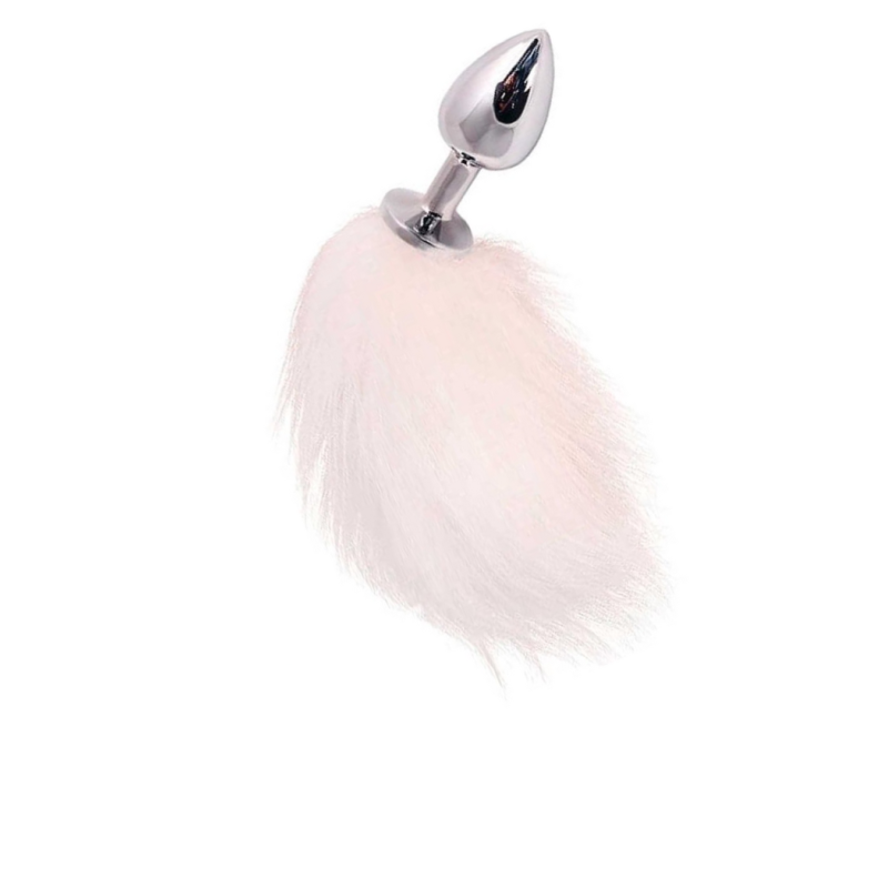 Uhke valge sabaga (22cm) hõbedane metallist anaaltapp. Ideaalne algajale! Hügieeniline ja kergesti puhastatav materjal, sobib kõigi libestite ja õlidega. Puhastamiseks sobib vesi ja seep, hea oleks kasutada ka antibakteriaalset puhastusspreid.