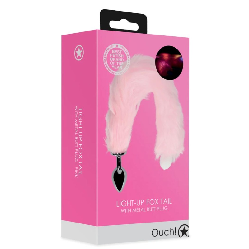 LED LIGHT-UP FOX TAIL WITH METAL PLUG - PINK