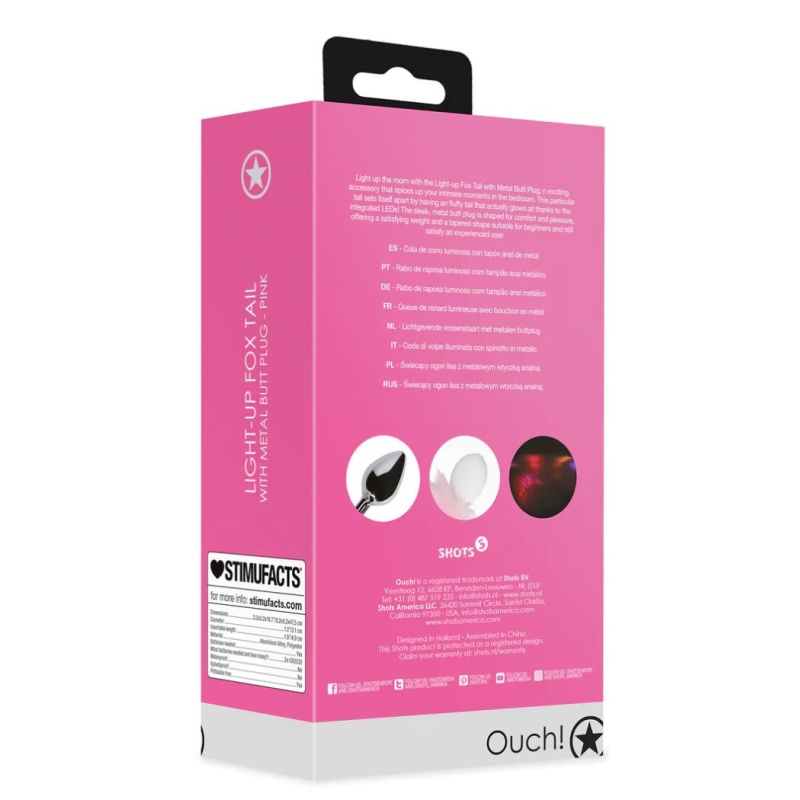 Light-up Fox Tail metallist anaaltapiga on mänguline ja pilkupüüdev aksessuaar, mis lisab intiimsetesse hetkesse erilise sära. Pehme ja kohev rebasesaba sisaldab integreeritud LED-valgustust, mis loob efektse helendava välimuse, samal ajal kui sile metallist anaaltapp pakub mugavat ja meeldivat tunnet tänu oma kaalule ja kitsenevale kujule – sobib nii algajatele kui ka kogenumatele kasutajatele.