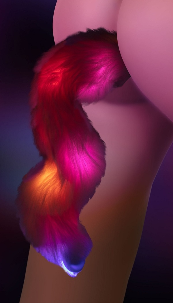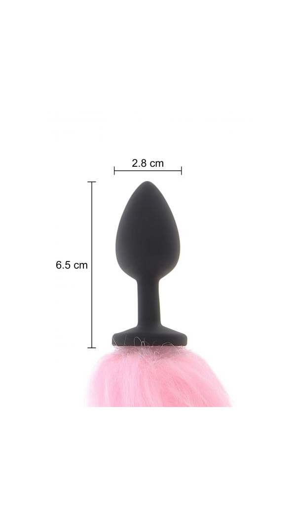 Eriti uhke ja fantaasiaküllane karvane, roosa, vilkuvate led-tuledega saba pisikese musta silikoonist anaaltapi otsas.