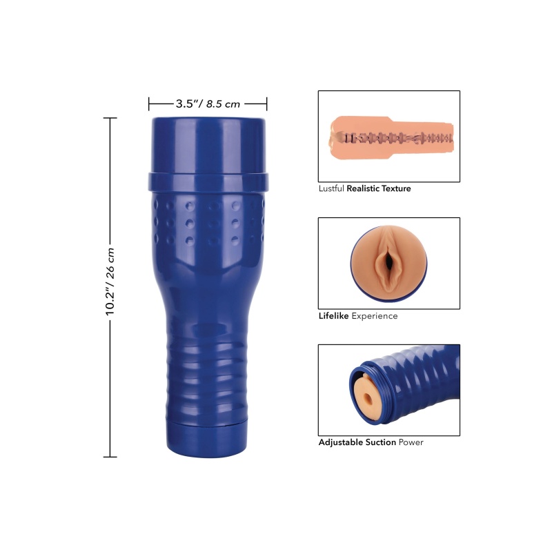 Suu on disainitud diskreetsesse, taskulambi kujulisse hoidikusse, mis on valmistatud sinist värvi plastikust.