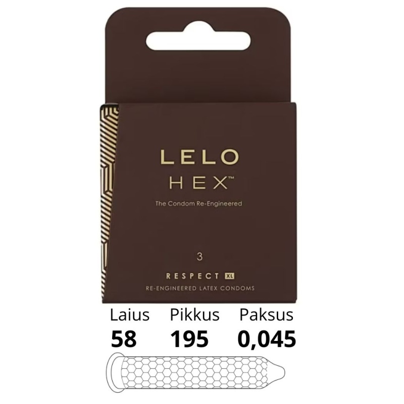 LELO – HEX RESPECT XL Kondoomid, 3 tk