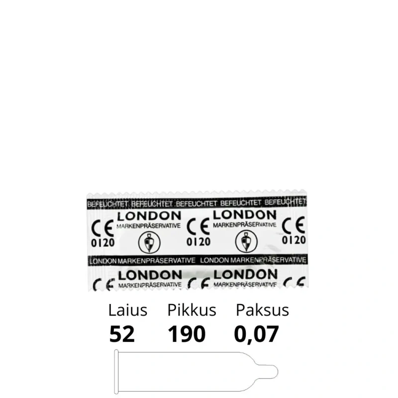 London Condom on loodud pakkuma usaldusväärset ja lihtsat kaitset raseduse ja sugulisel teel levivate haiguste eest. Selle klassikaline kuju ja sirge disain muudavad kondoomi paigaldamise lihtsaks ja kasutamise mugavaks. Silikoonlibestiga kaetud pind ja reservuaariga ots tagavad sujuvama kogemuse ja lisavad turvalisust.