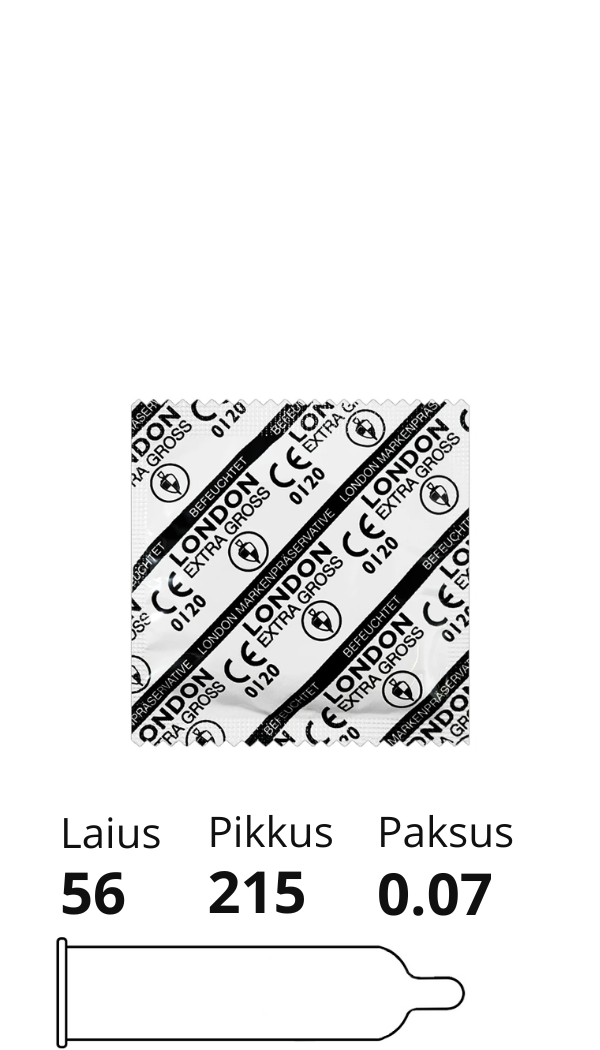 London Extra Gross kondoomid pakuvad suuremat mugavust ja turvalisust neile, kes vajavad tavapärasest suuremaid kondoome. Ideaalne valik pikemaks ja nauditavamaks seksuaalkogemuseks, pakkudes usaldusväärset kaitset ja suurepärast sobivust!