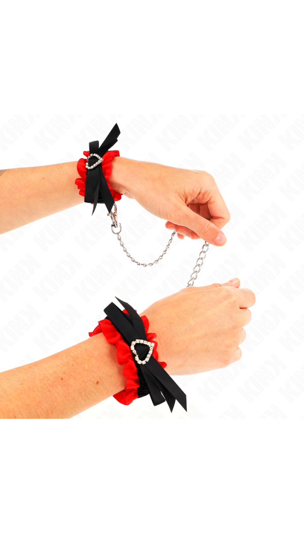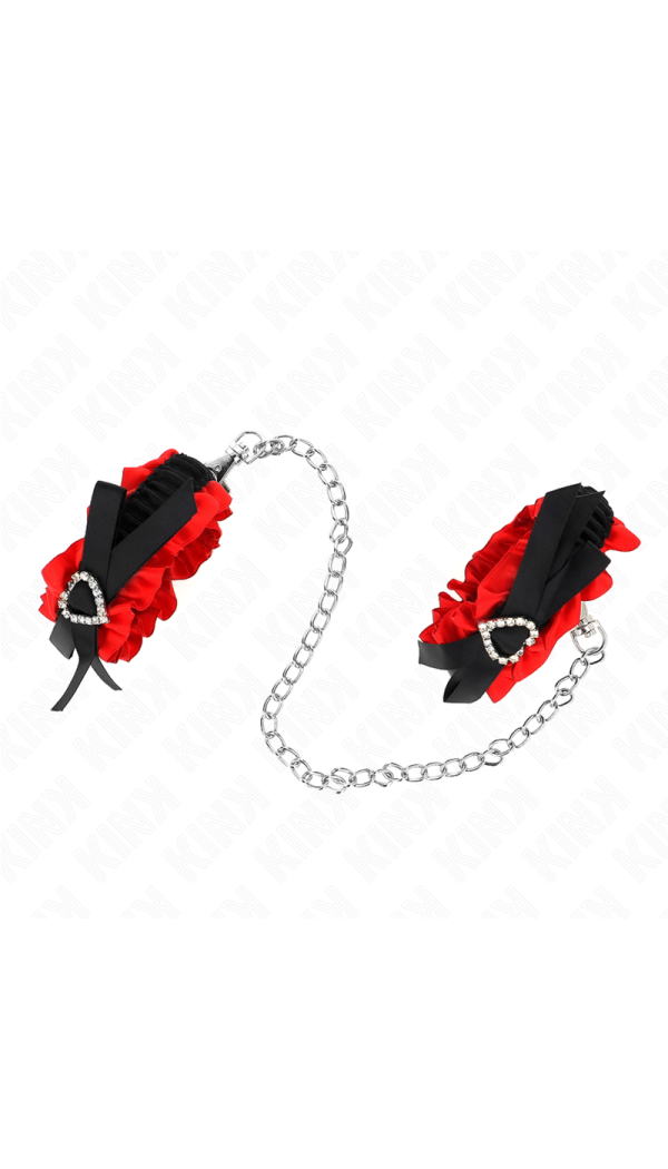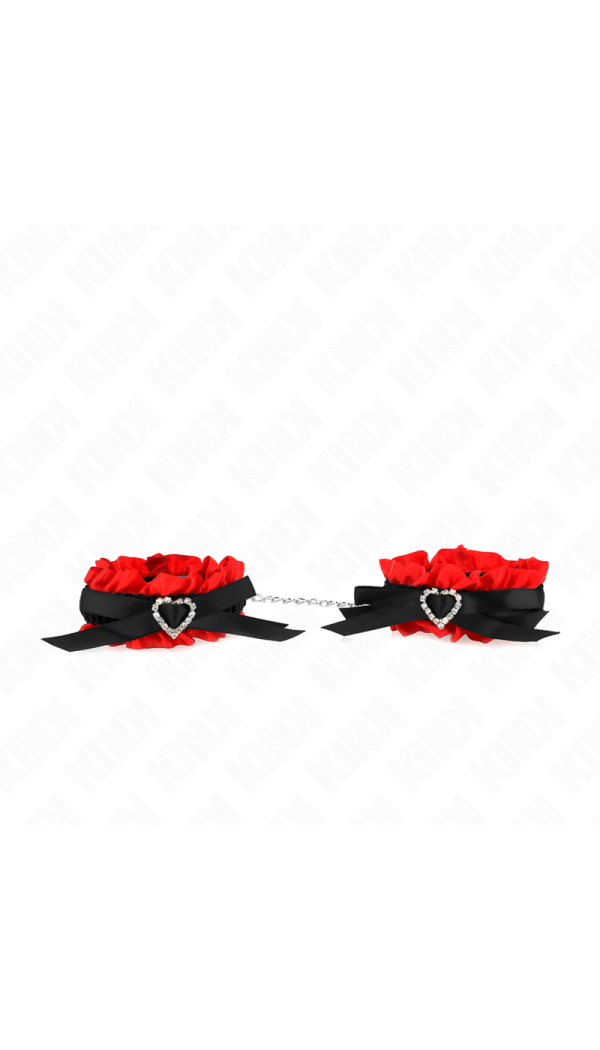 Need KINK elastsed käerauad on samaaegselt mängulised ja elegantsed. Punase ja musta värvikombinatsioon koos sädelevate südamekujuga detailidega annab neile romantilise, kuid samas vallatu välimuse. Käerauad on omavahel ühendatud kerge metallketiga, mis lisab veidi piirangu tunnet, ilma et see muutuks ebamugavaks.